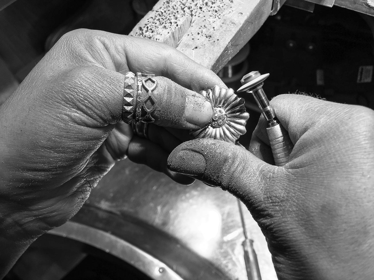 SAMORA STUDIO is an award winning, family run, luxury jewelry design studio in Taos, New Mexico. Immersed in culture, creative spirit and natural beauty, Maria Samora designs and fabricates wearable art with husband, jewelry maker and photographer, Kevin Rebholtz.